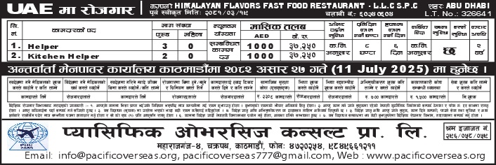 • Company:– HIMALAYAN FLAVORS FAST FOOD RESTAURANT – L.L.C S.P.C